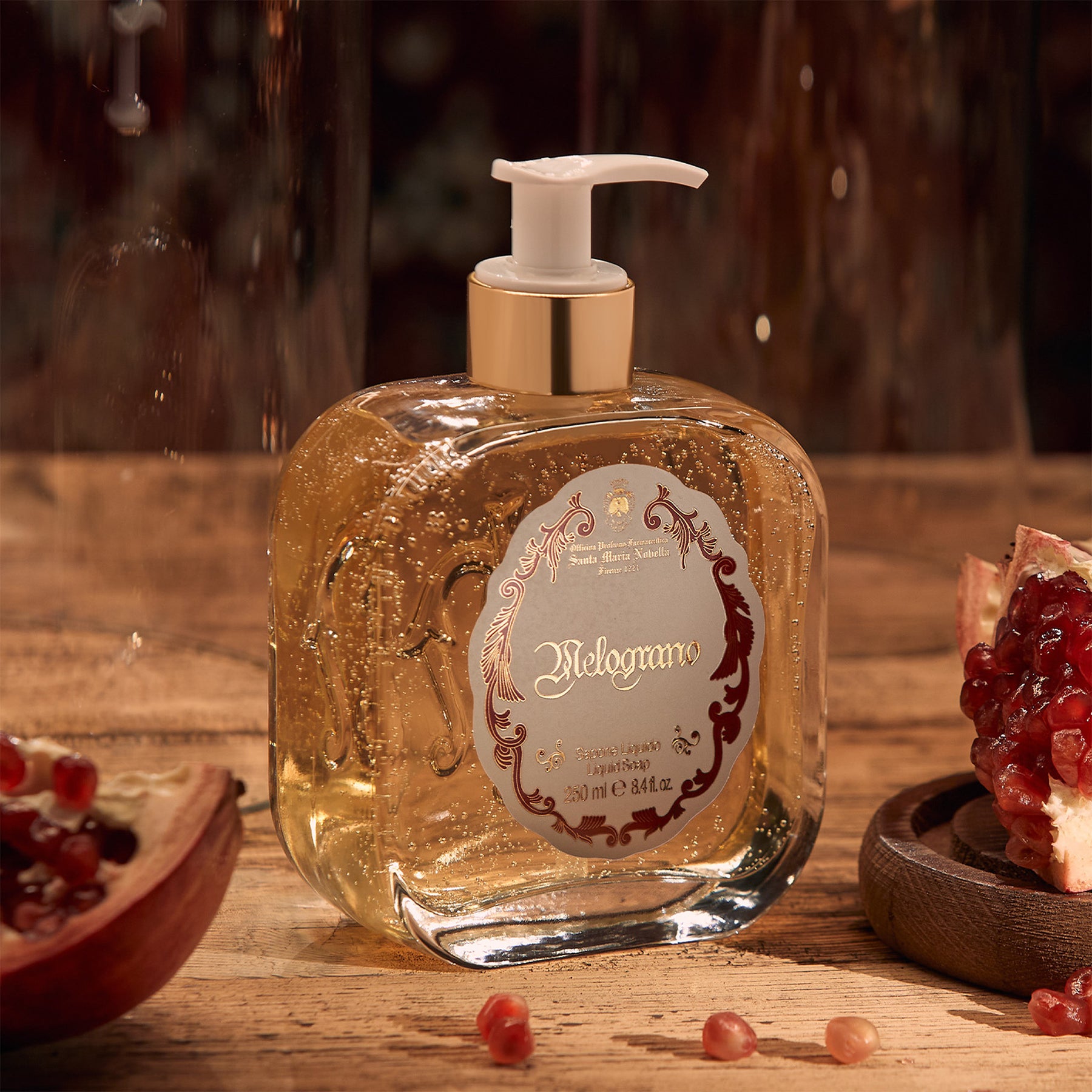 Melograno is warm and spicy with an antique soul. Fruity accents sit alongside florals and resins, giving the fragrance a rich, slightly powdery and ceremonial feel. Its essence mirrors the iconic Melograno cologne.