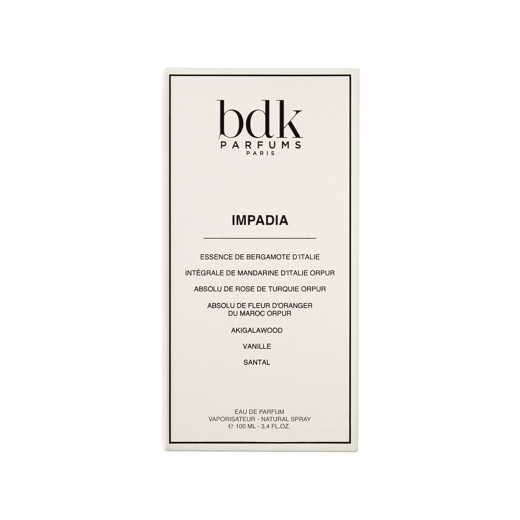 Impadia evokes that precious moment of the day when Paris turns into an abstract painting, a symphony of colors. The fragrance captures this essence and spirit, these warm, vibrant reflections. Wrapped in its coat of light, the city pulses with the energy of a radiant day full of sensuality and freedom, inviting expression and the strength of the body.